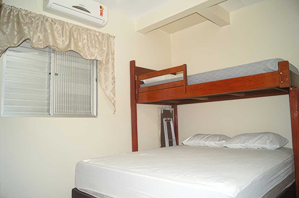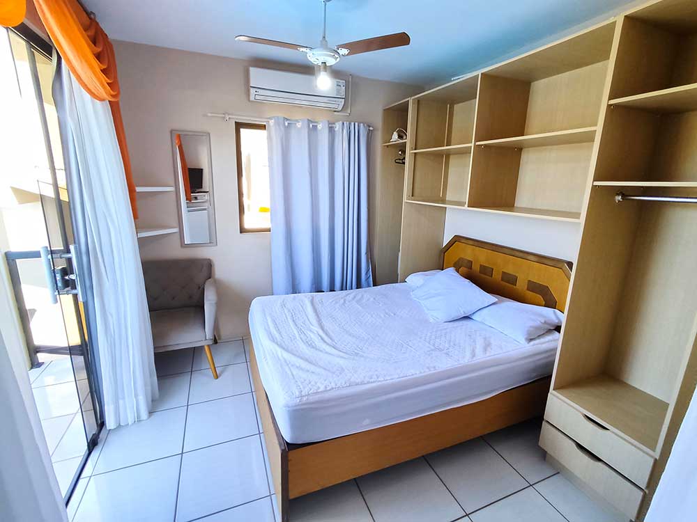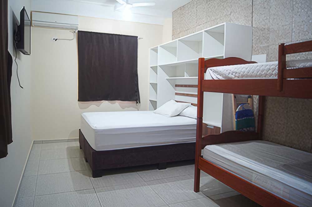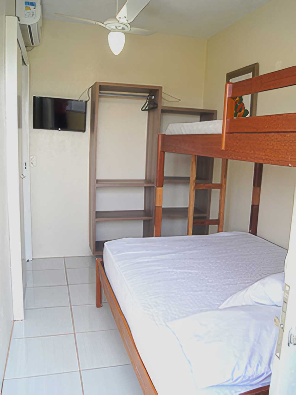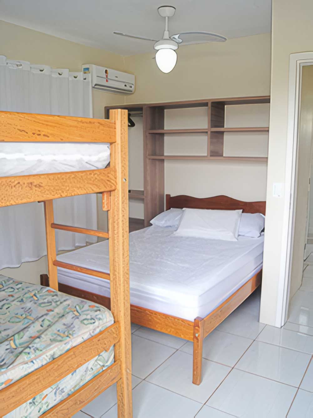 • 02 quartos de casal com ar condicionado (sendo um quarto com 01 cama de casal + 01 beliche, ambos com ventilador de teto e TV 32")