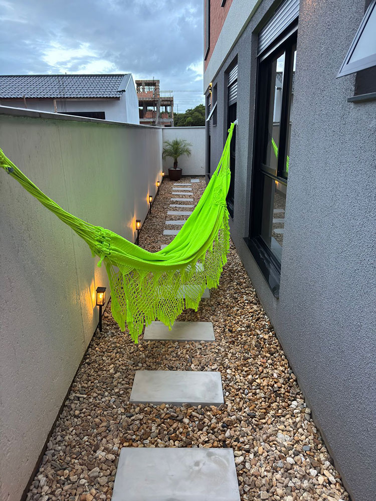 O apartamento possui um *garden com área externa* ideal para relaxar e uma *sacada com churrasqueira* perfeita para reunir amigos e familiares. Situado na Praia do Sonho, em Santa Catarina, este é o destino ideal para quem busca estar próximo ao mar, com toda a comodidade de uma casa bem equipada.