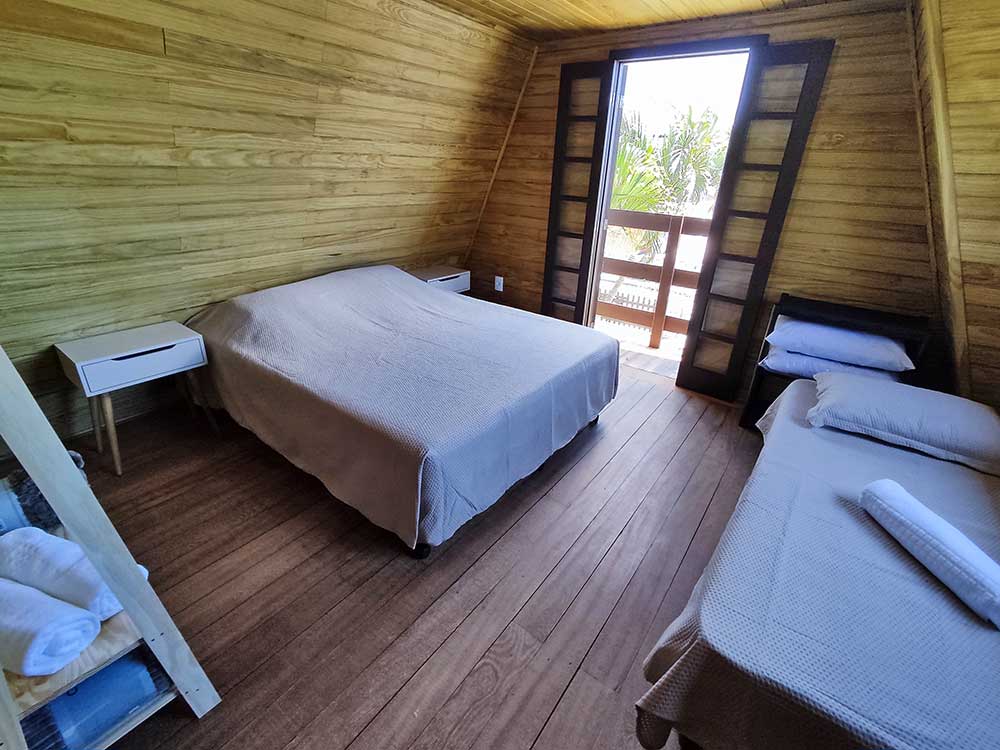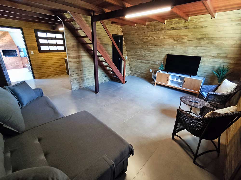 Aluga-se chalé novo localizado no Balneário Ponta do Papagaio, aproximadamente 150 metros da praia, equipado com: