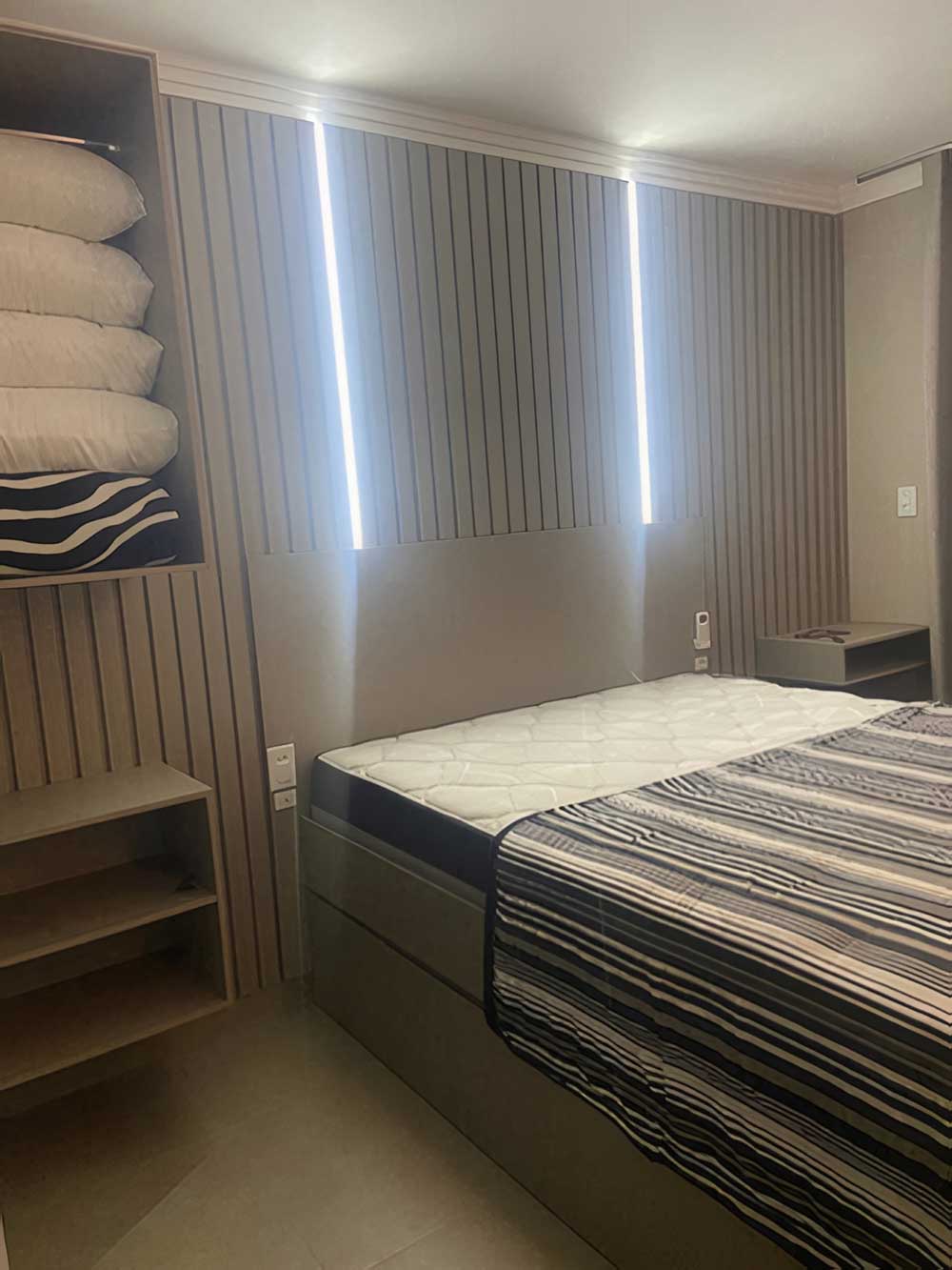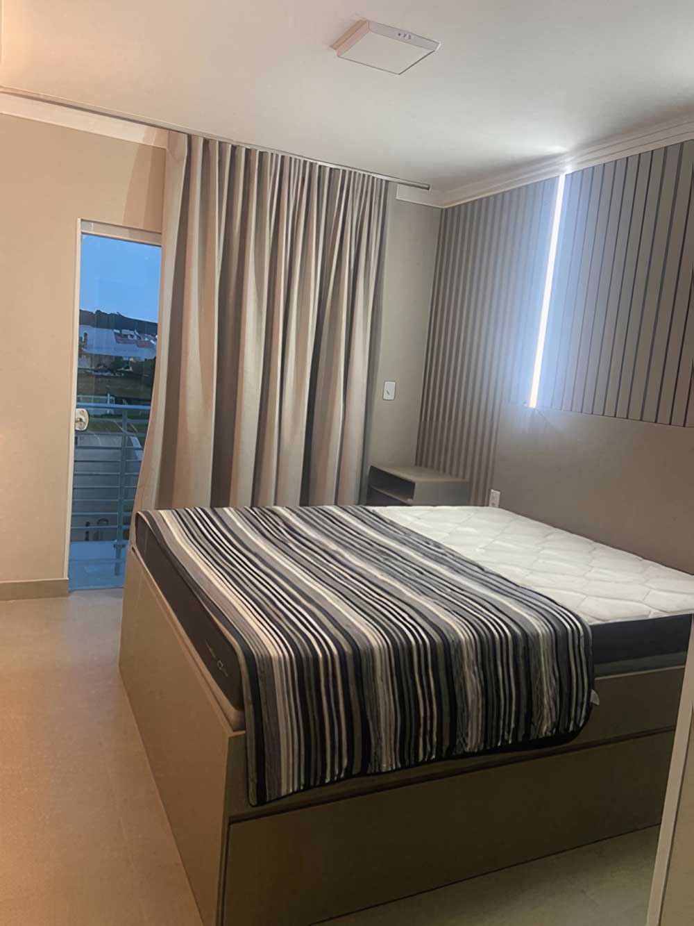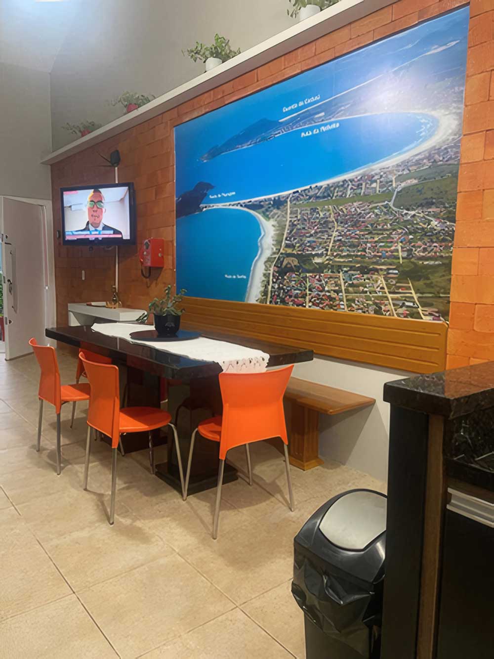 - Cozinha completa (com forno elétrico, microondas, churrasqueira, liquidificador, cafeteira, TV LED 42", cervejeira e geladeira com freezer)