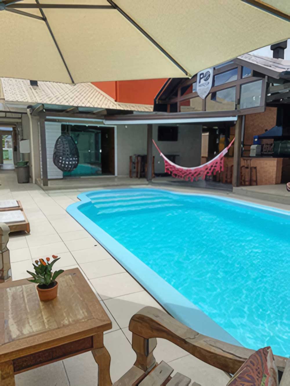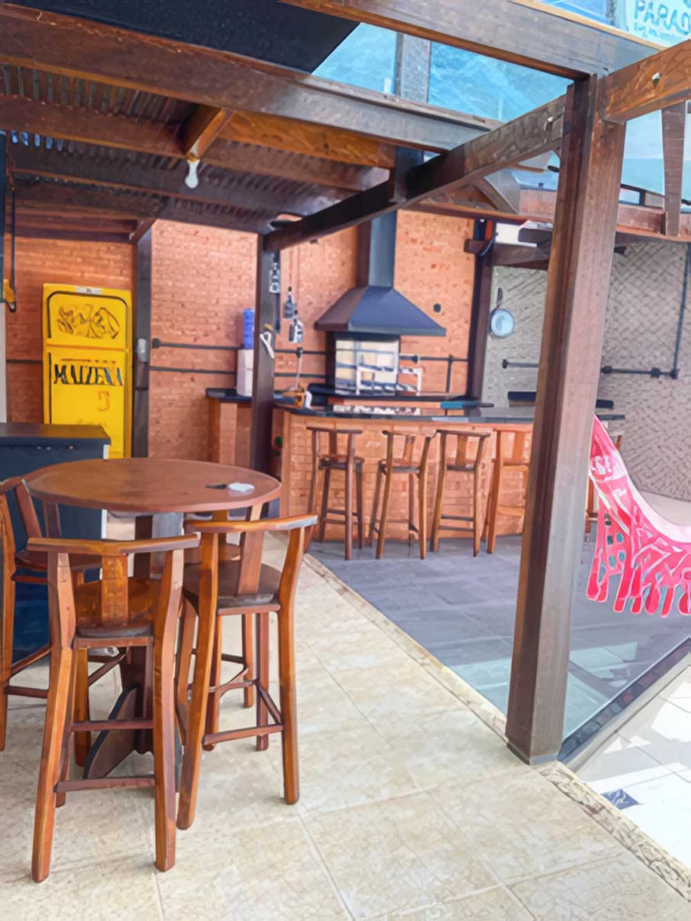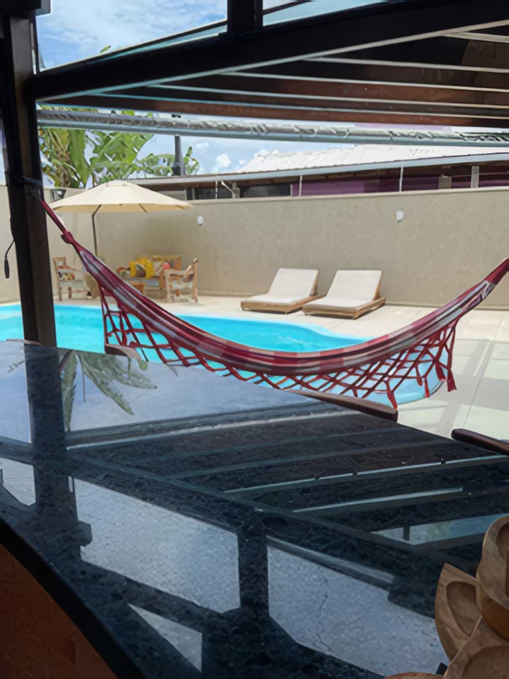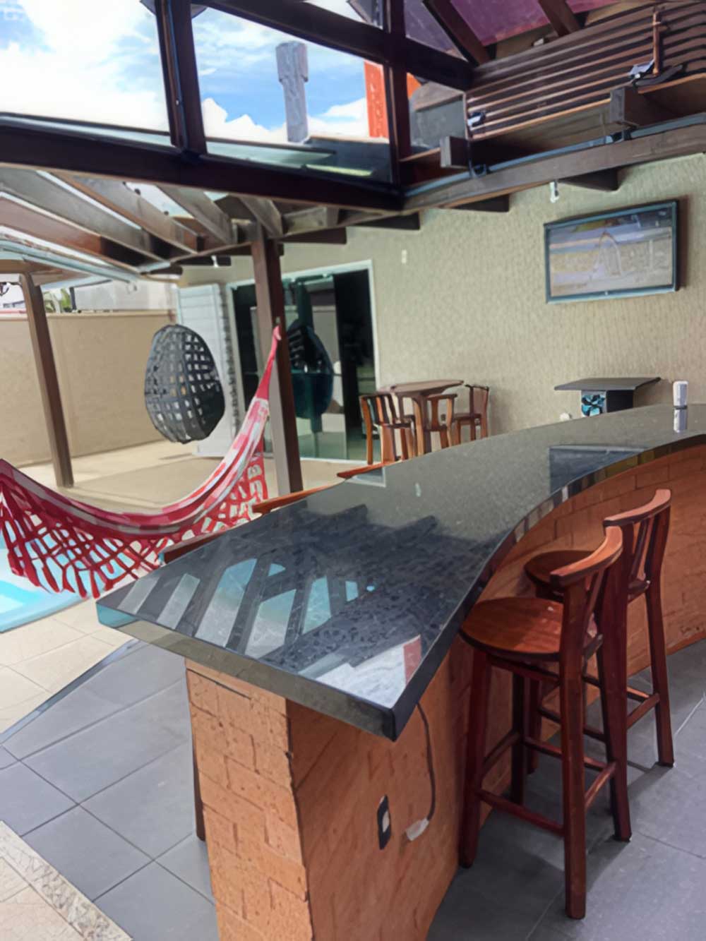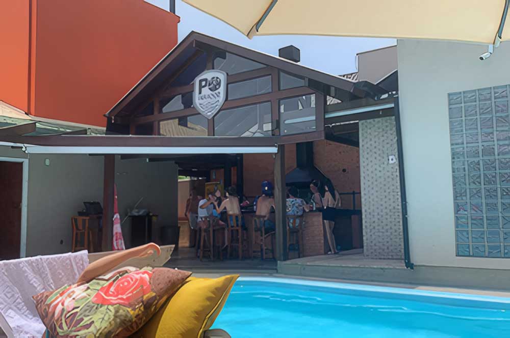 - Lounge (com churrasqueira, espetos rotativos, geladeira duplex, bebedouro refrigerado, ventilador de teto com controle, redes e ninho)