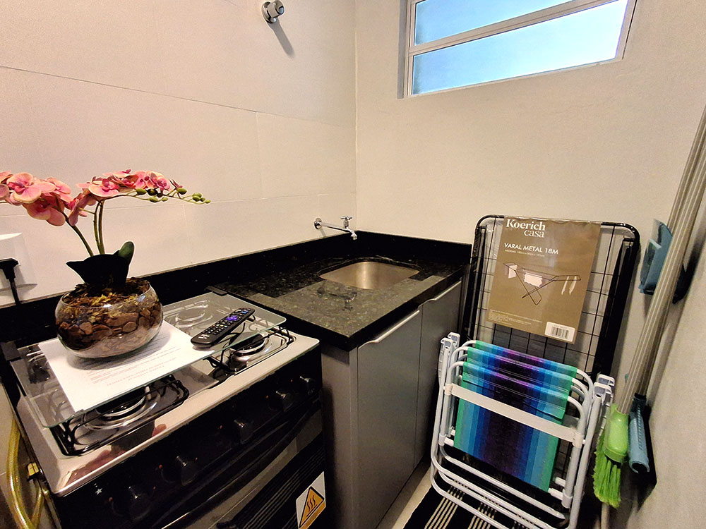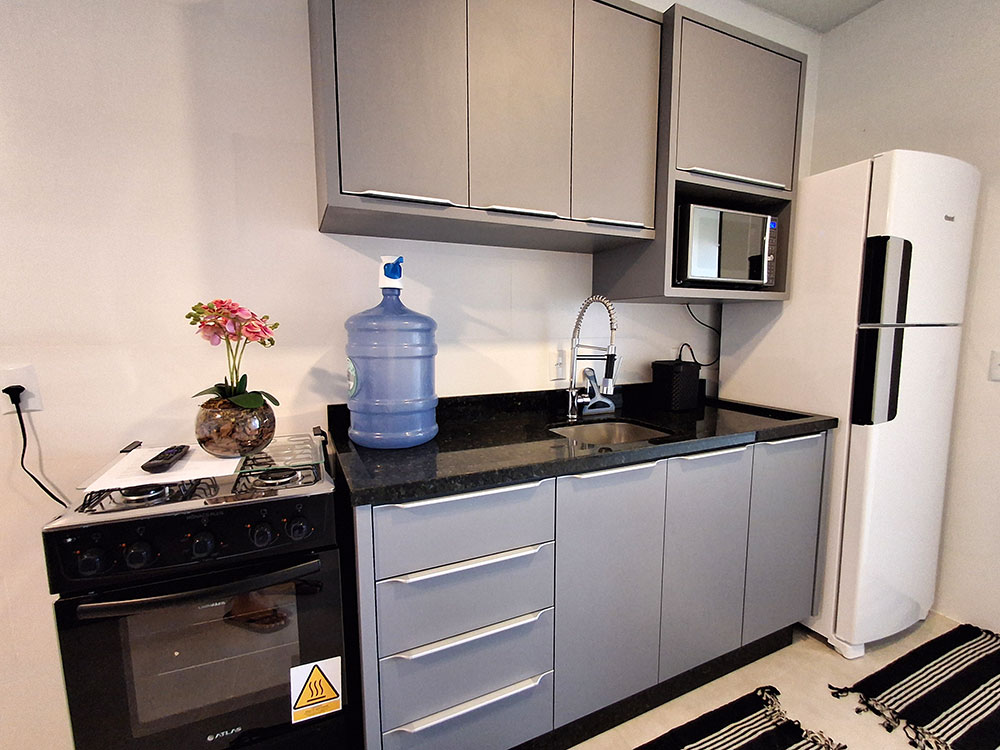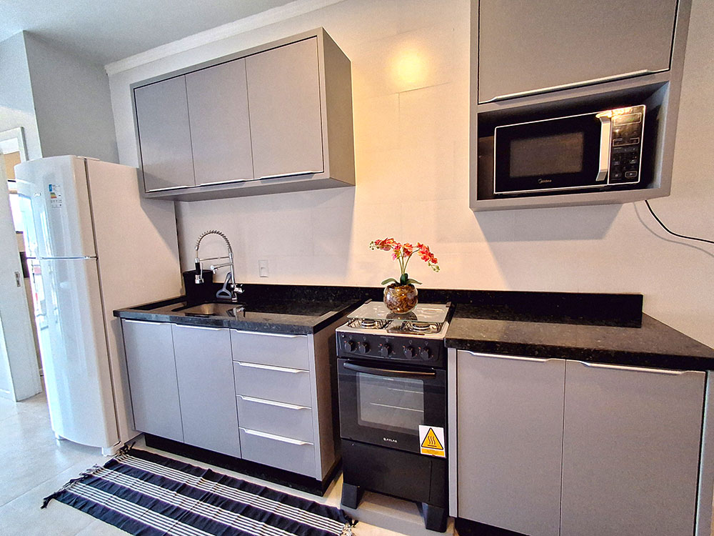 - Cozinha completa (c/ microondas, forno elétrico, geladeira duplex, liquidificador e sanduicheira)
