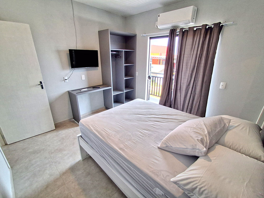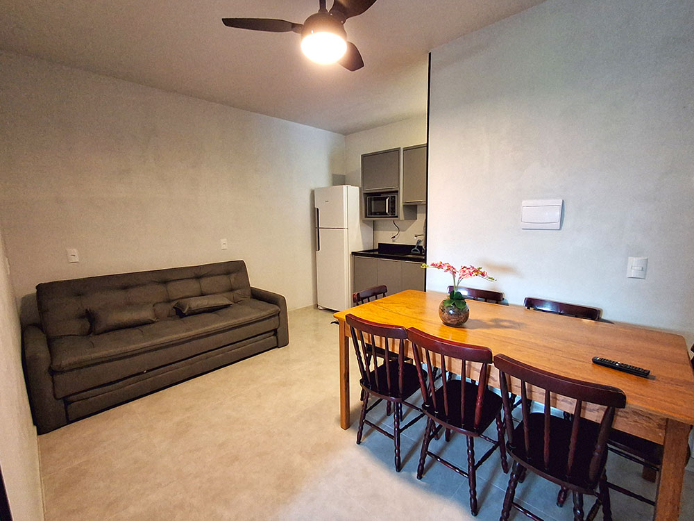 Dispomos de apartamentos com 01 e 02 dormitórios (com ar condicionado), cozinha completa, internet Wi-Fi e churrasqueira.