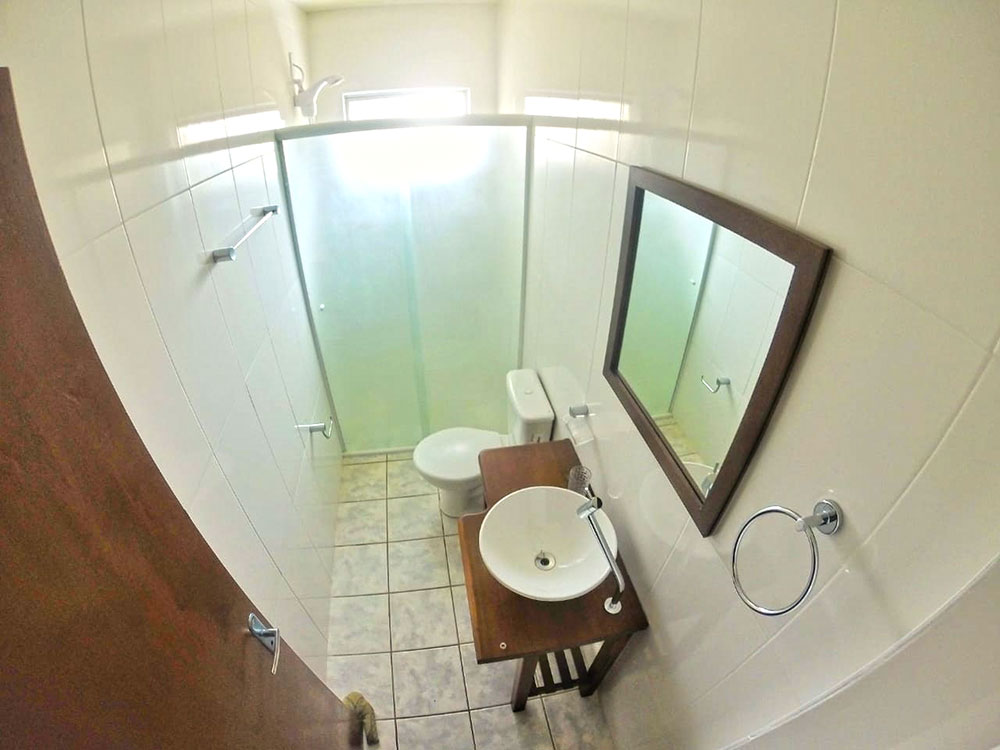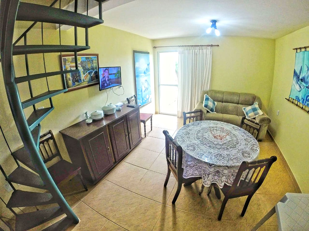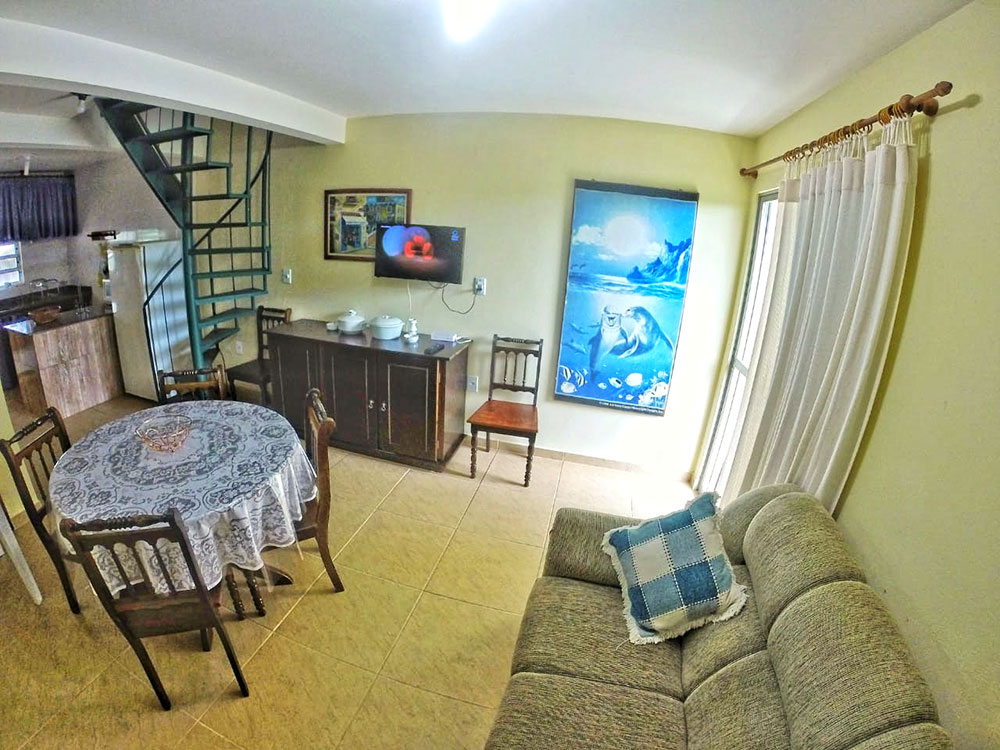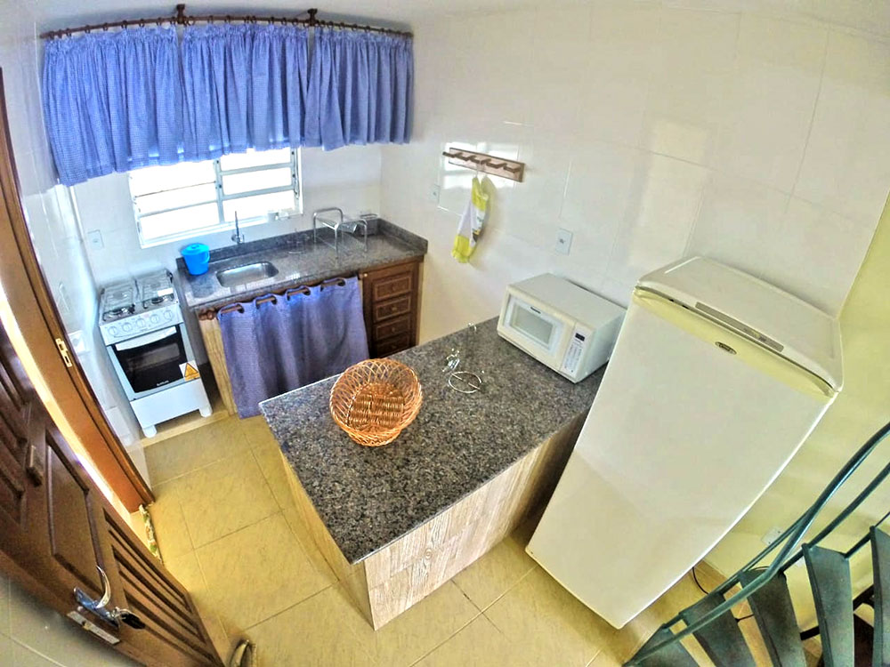 As casas contam com 02 quartos com ar condicionado (sendo 01 quarto de casal com sacada e 01 quarto de solteiro), sala/copa, cozinha completa (inclusive com microondas e cafeteira), internet Wi-Fi, lavabo, banheiro e área de serviço com churrasqueira. Com capacidade para 6 pessoas. OBS.: Não aceitamos animais e é proibido o uso de som.
