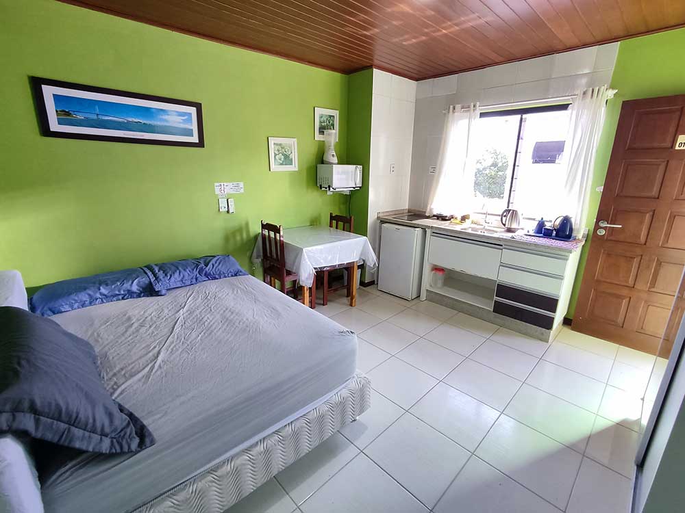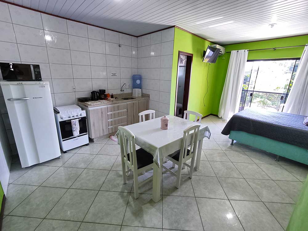 Todas unidades equipadas com ar condicionado, cozinha completa, internet Wi-Fi e TV.