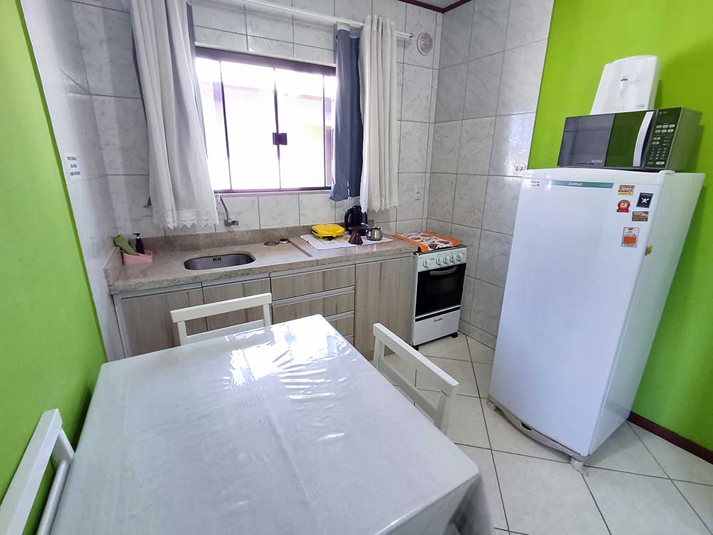 • Cozinha completa (c/ microondas, geladeira, fogão 04 bocas com forno a gás, cafeteira, chaleira elétrica e sanduicheira)