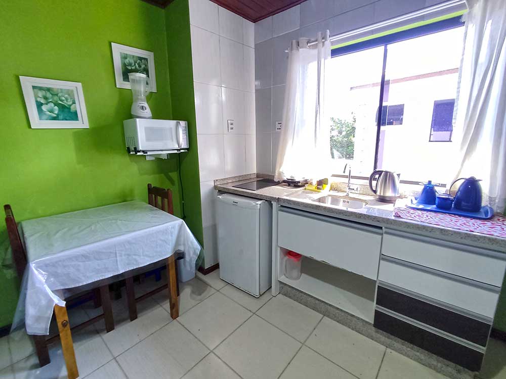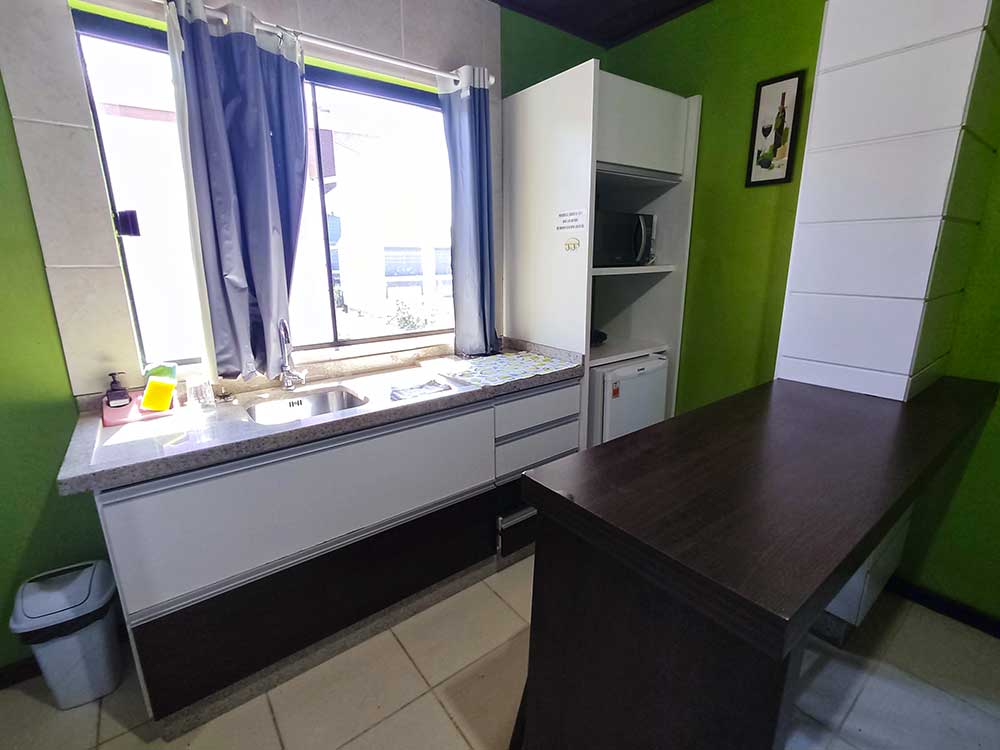 • Cozinha completa (c/ microondas, frigobar, fogão elétrico 02 bocas, cafeteira e sanduicheira)