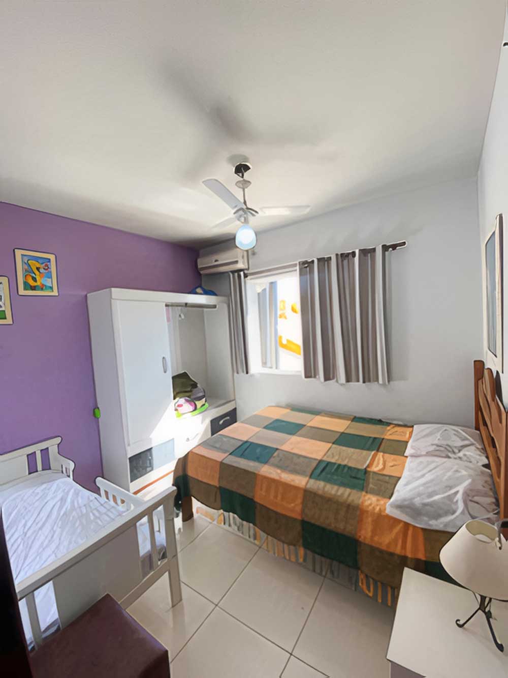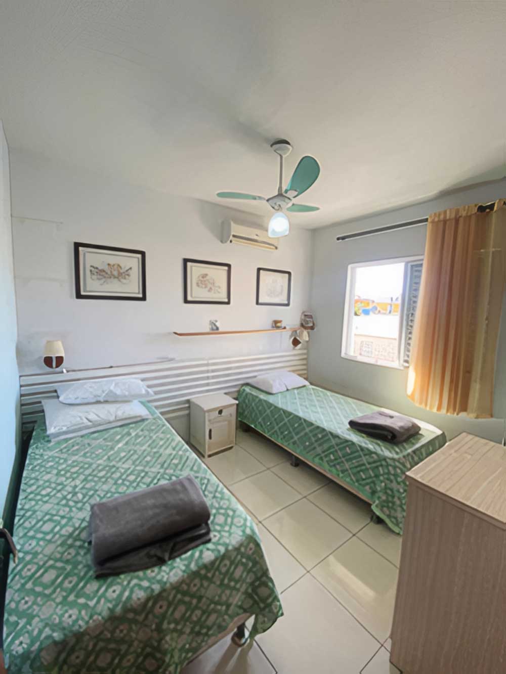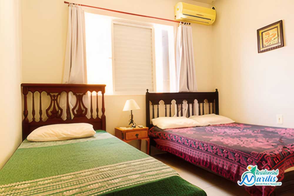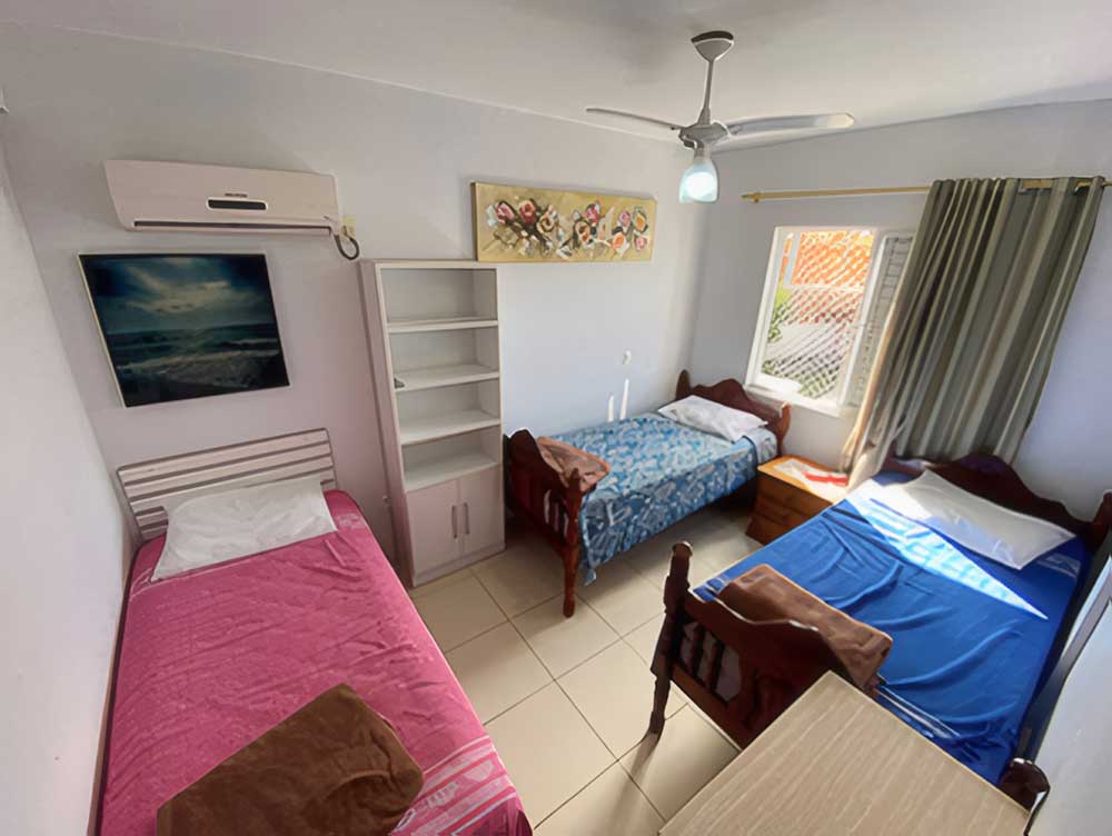 • Apartamento de 3 quartos: uma suíte, um quarto de casal e um quarto com duas camas de solteiro (opção de um colchão de solteiro por taxa de R$ 10,00)