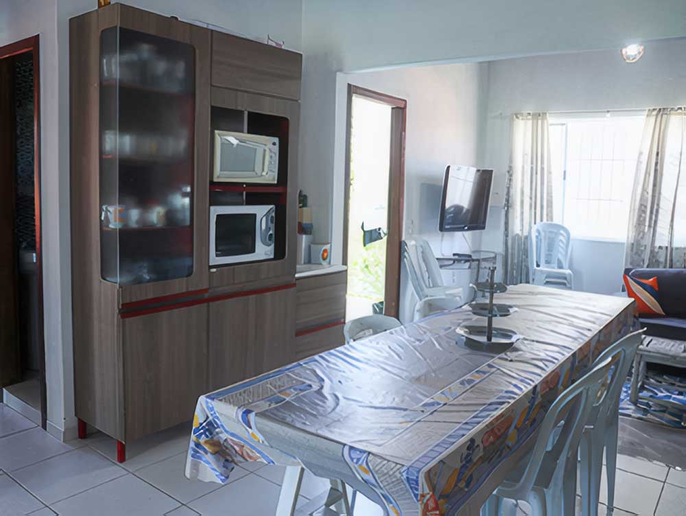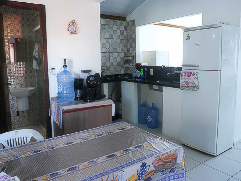 • 01 cozinha completa (com cafeteira, sanduicheira, liquidificador, batedeira, microondas, forno elétrico, 02 geladeiras e 01 fogão)