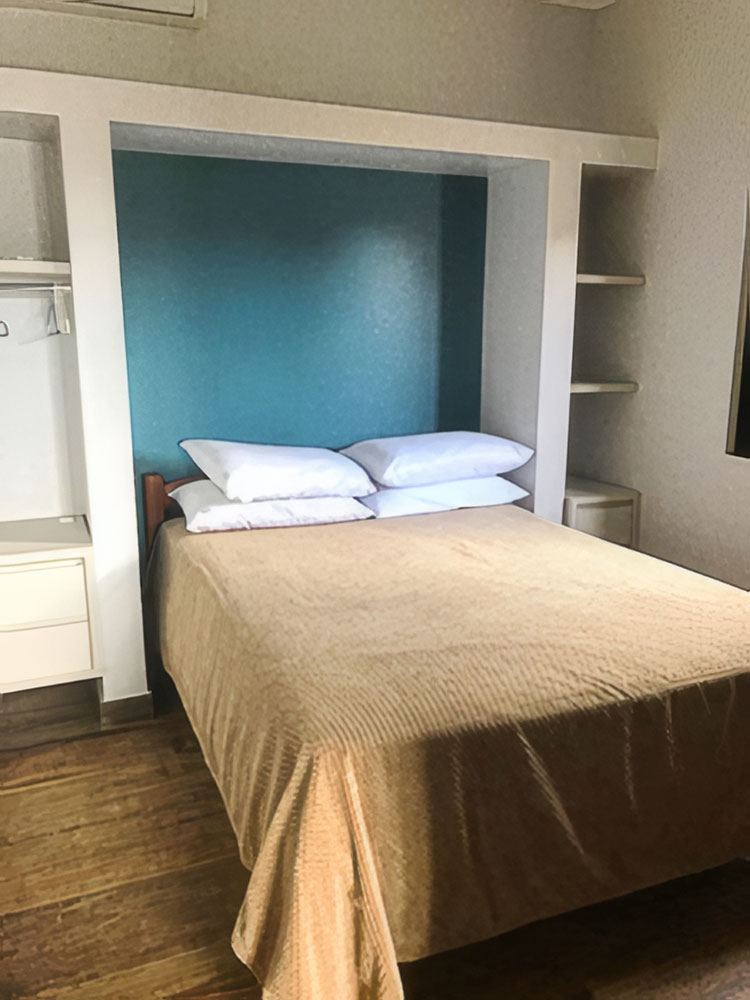 ![]() Quarto com cama de casal; não fornecemos roupa de cama mesa e banho. |